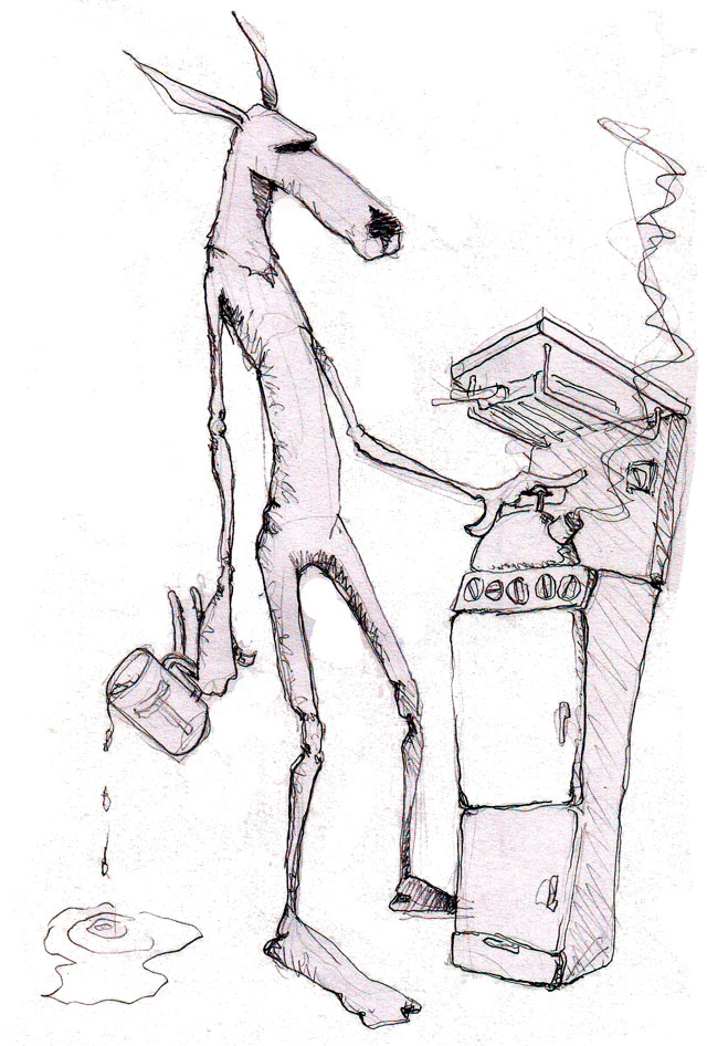 Imagine the drawing is set in a forest for the full concept design idea… I like like the idea that abandoned cooking equipment might work for forest dwellers without reasonable sources of energy just because they fancy a cup of tea…