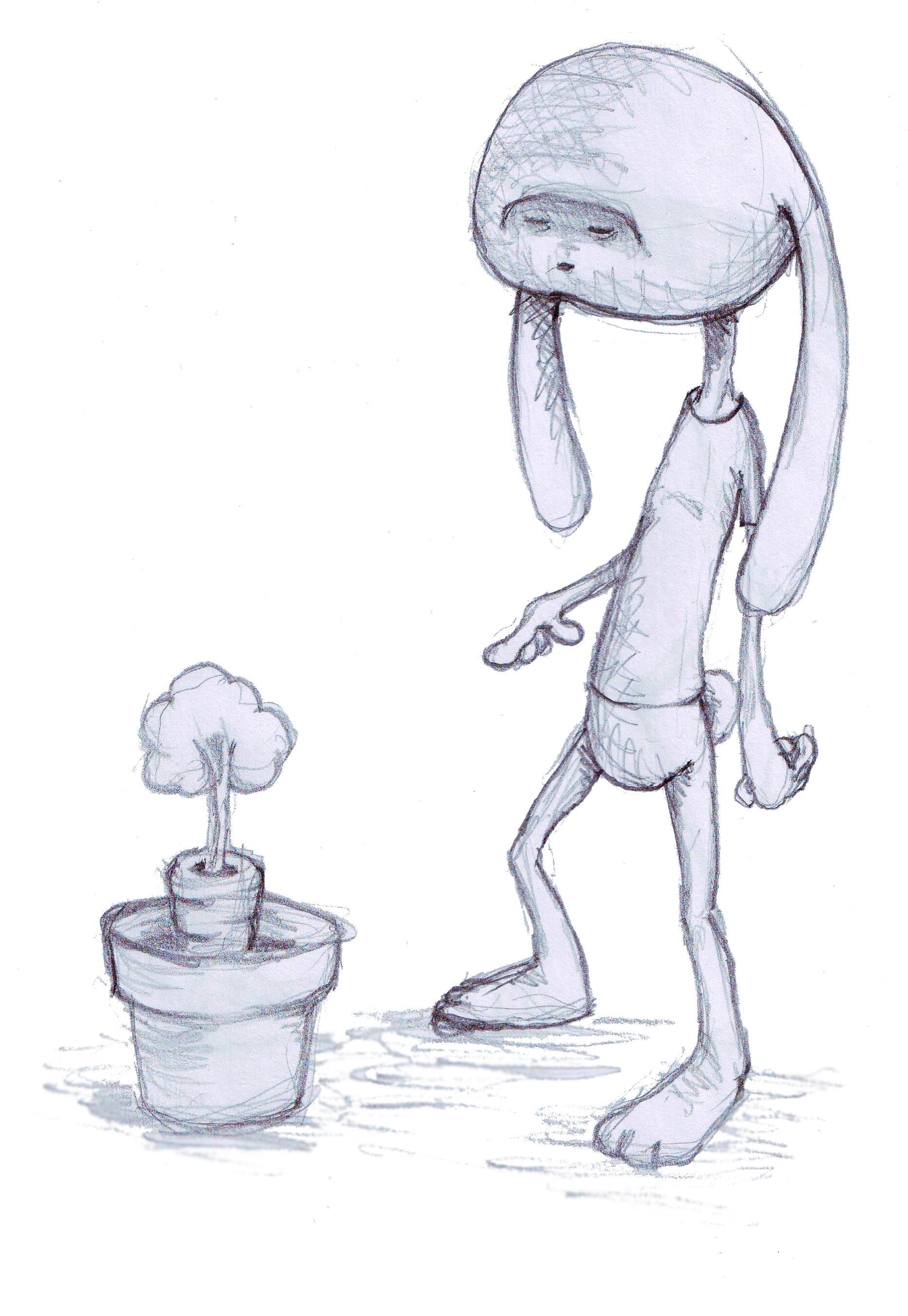 Six and a half hours of meetings with various teams… leads to lugubrious bunnies and sad robots… here are just some of the drawings…